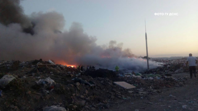 Сміттєзвалище загорілось сьогодні о 19:30. Площа пожежі становить приблизно 150 м.кв. Сама ж площа сміттєзвалища – 21,15 га.