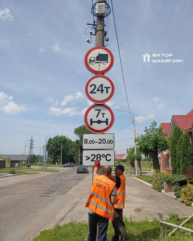 – Якщо температура повітря становить +28 градусів, то з 08:00 до 20:00 в’їзд у Рівне вантажівкам заборонено, аби не шкодилося асфальтобетонне покриття. У цей часовий проміжок водії можуть зачекати у спеціальних місцях відстою великовагового транспорту.