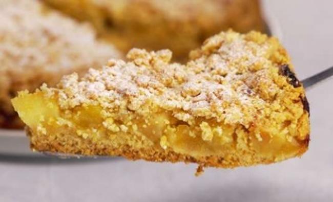 Викласти начинку і присипати рівномірно рештою тіста з крихт. Випікати 35-40 хв. при 180 град. до золотистого кольору.