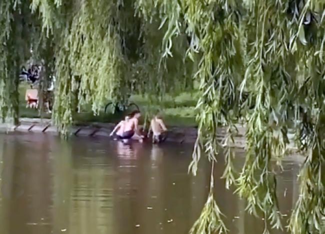 У спільноті typove.rivne в Інстаграм з’явилося відео, де відчайдухи купаються у парку Молоді в рівному — на «Лебединці».