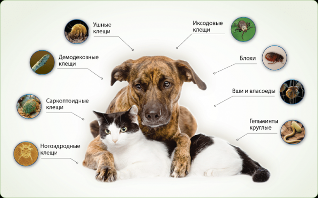Препараты против паразитов отличаются по активным веществом и его концентрацией. Препараты против блох и клещей изготавливают на основе: