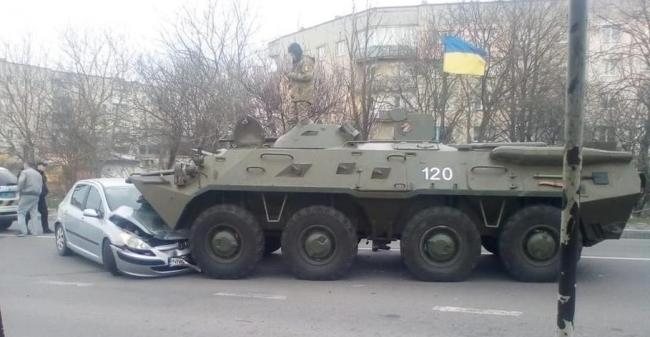 Начальник прес-центру управління оперативного командування «Захід» Анатолій Прошин повідомив, що що військова техніка рухалася в колоні у супроводі автомобілів військової служби правопорядку та патрульної поліції. Коли на перехресті вулиць Коперника та Шкільна у БТР відмовили гальма, щоб уникнути зіткнення з автомобілем, який рухався попереду та наїзду на жінку з дитиною та коляскою, водій бронетранспортера застосував ручне гальмо та виїхав на зустрічну смугу, де сталося зіткнення з цивільним автомобілем. Постраждалих в ДТП немає. Решта обставин з’ясовується.