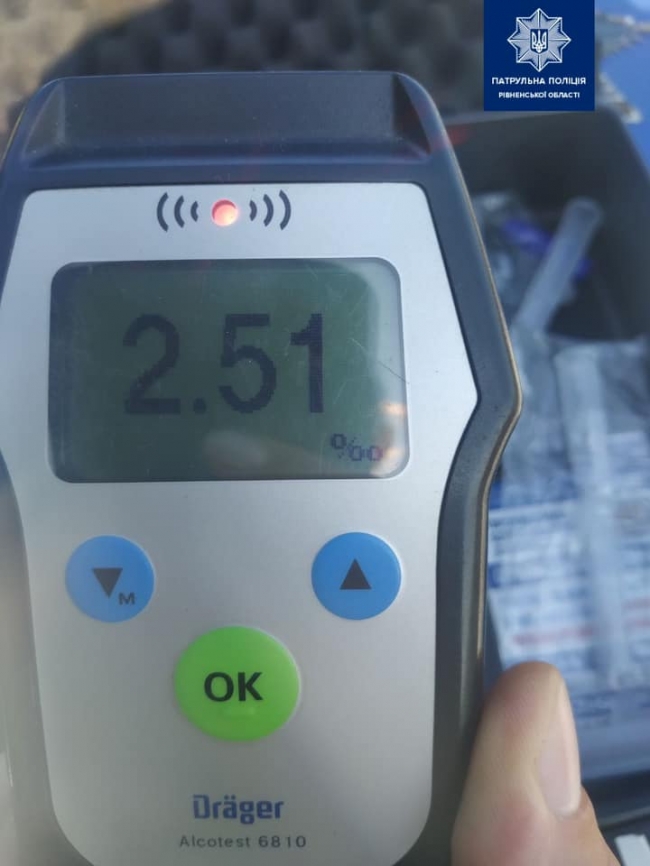 Водій не зупинився на вимогу. Вдалось його зупинити лише в Горбакові. Під час спілкування з 33-річним водієм патрульні виявили ознаки алкогольного сп’яніння. Останньому запропонували пройти огляд на Драгері. Він становив 2.51 проміле.