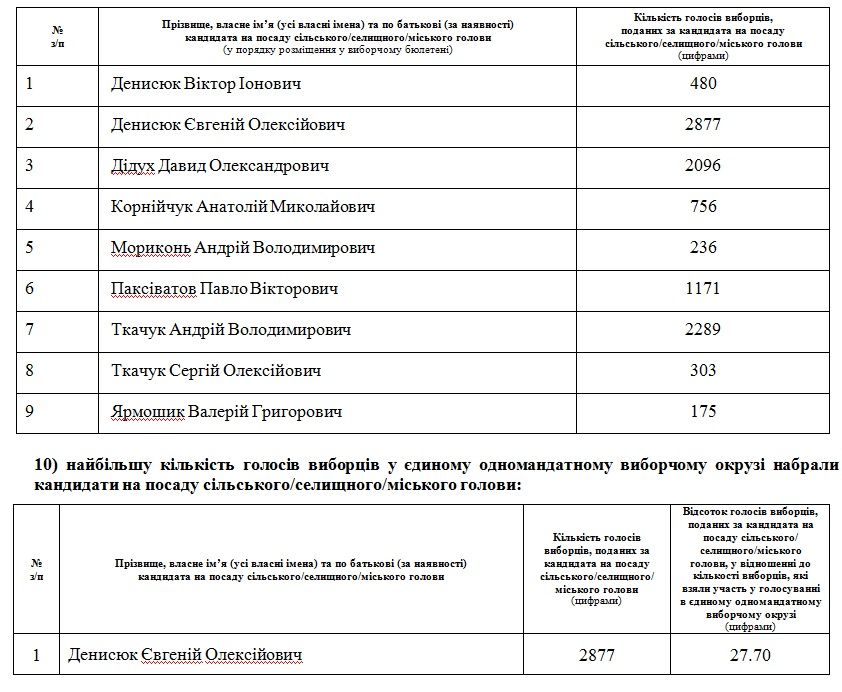 За посаду міського голови змагалося аж дев’ять претендентів. Однак перемогу здобув чинний міський голова Євген Денисюк, який балотувався як самовисуванець.