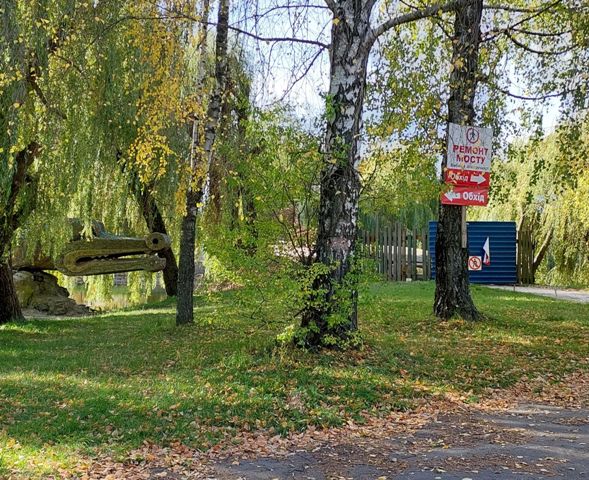 Старий дерев’яний міст біля скульптури «Крокодил», яким щодня користували сотні перехожих, розвалювався на очах. Деякі дошки у настилі зогнили і небезпечно прогнулися. Та й сходи до мосту були не в найкращому стані. Однак лагодитити його взялись не комунальники, а підприємці, бо неподалік розташований ринок Дикого, до якого зручно добиратися саме завдяки парковим місткам.