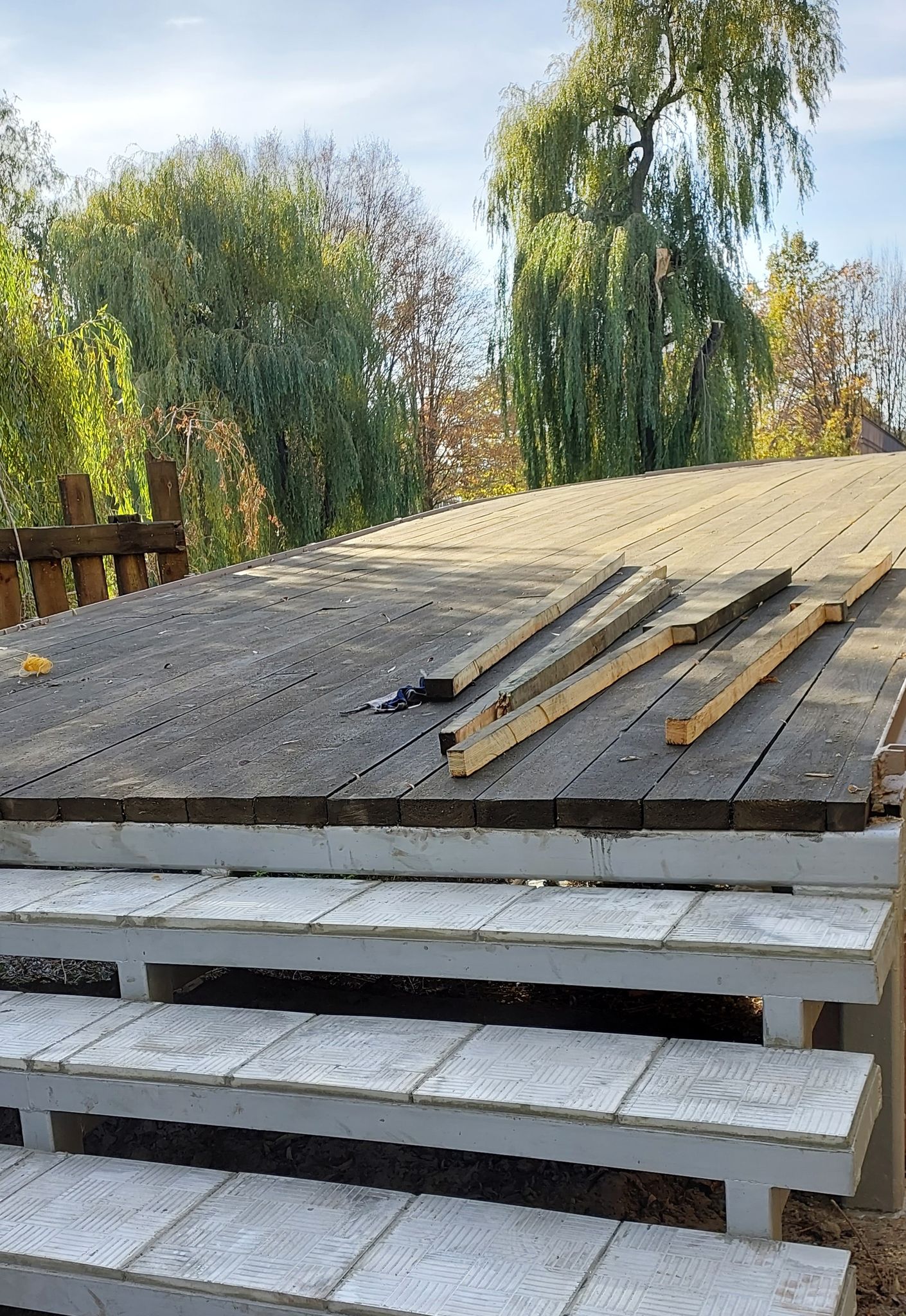 Його перекрили для ремонту ще наприкінці літа і не відкрили досі, хоча настил на мосту готовий та монтують оновлені поручні.