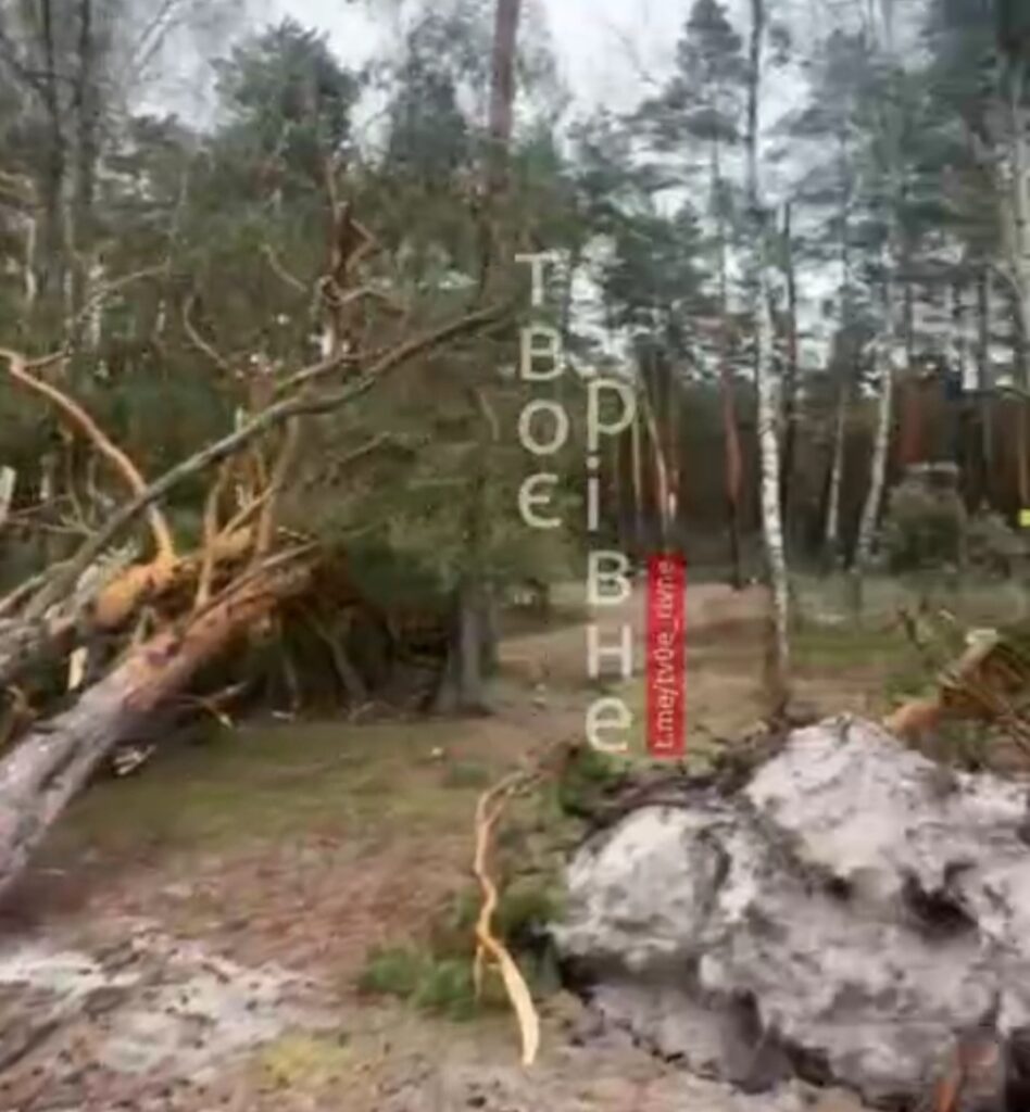 А як повідомили у соцмережах, навколо Білого озера вітер масово повалив дерева, деякі аж з корінням.