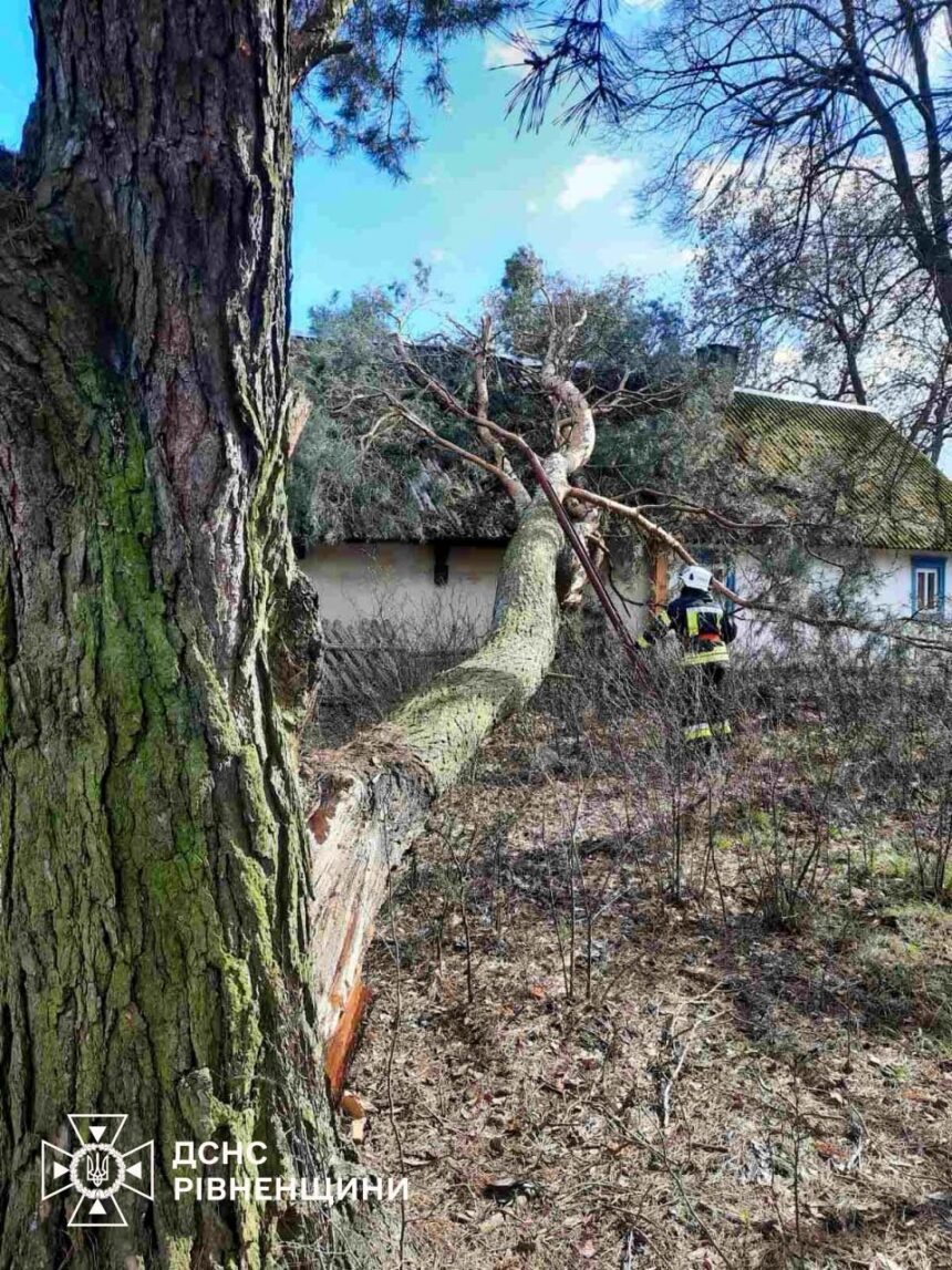 – У Рівному прибрано дерево з пошкодженого автомобіля та знято аварійні елементи балконів і покрівель за трьома адресами. А у селі Суховоля частину дерева зняли з житлового будинку, – кажуть в ГУ ДСНС Рівненщини.