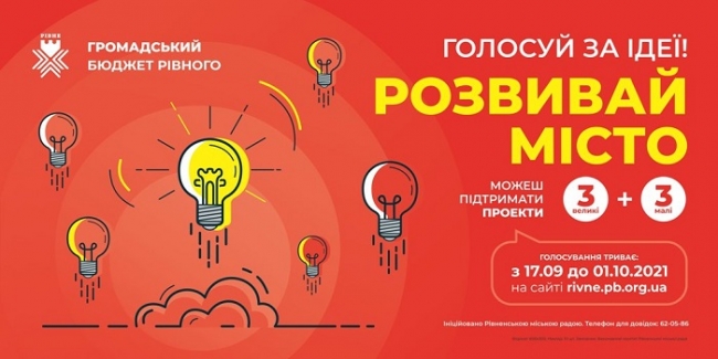 Голосування відбуватиметься з 17 вересня по 1 жовтня включно на сайті https://rivne.pb.org.ua/ (цілодобово).