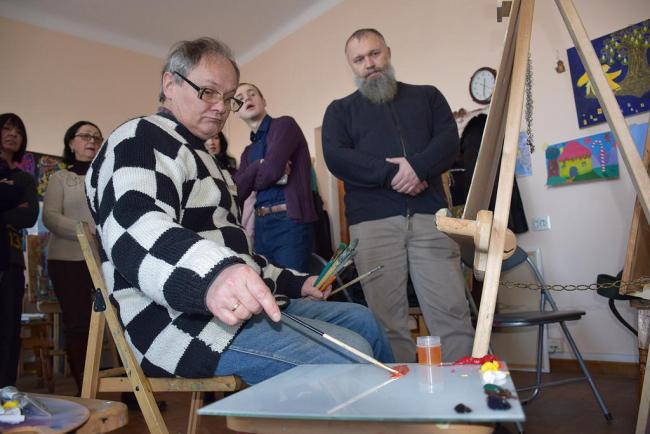 І, виявляється, є рівняни, які цим цікавляться. Деякі вчилися в художніх школах, інші отримували художню освіту й при університетах. Проте є й такі, що в житті пензлика в руках не тримали, але мрію зробити це пронесли через усе дитинство та доросле життя. — Я — професійний фотограф, – каже 46-річний Дмитро. — Все життя працював з фотоапаратом, а тепер хочу створити щось власними руками, тому й прийшов на майстер-клас до Олександра Гуристюка. Це мій перший урок в нього. Хочу отримати від нього максимум знань про живопис. Адже вміти писати картини — моя давня мрія. В дитинстві я дуже любив малювати, і тепер повернувся до цього свого захоплення. Чому так пізно? Не знаю. Мабуть, настав мій час. Олександр Гуристюк спершу сідає сам за мольберт та показує, як треба намітити на полотні олійними фарбами натюрморт. В одній руці у нього — понад десять пензликів. Обриси пляшок та яблука на столі під його вмілими рухами переростають в об’ємні та багаті на кольорову гаму предмети. Учасники майстер-класу спостерігають за усім цим із завмиранням та ловлять кожне слово-пораду майстра. Він впевнений — навчитися живопису може кожен.