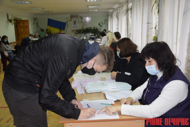 – Під дверима дільниці вже чекало троє чоловік, щоб проголосувати, – розповіла голова ДВК Валентина Олійник. – Потім ажіотажу не було. Чекаємо його пізніше по обіді, коли студенти почнуться з’їжджатися. З 1592 виборців, які закріплені за нашою дільницею, лише одна людина голосуватиме на дому. Ми поїдемо до неї пізніше. Захисні засоби нам видали в повній мірі.