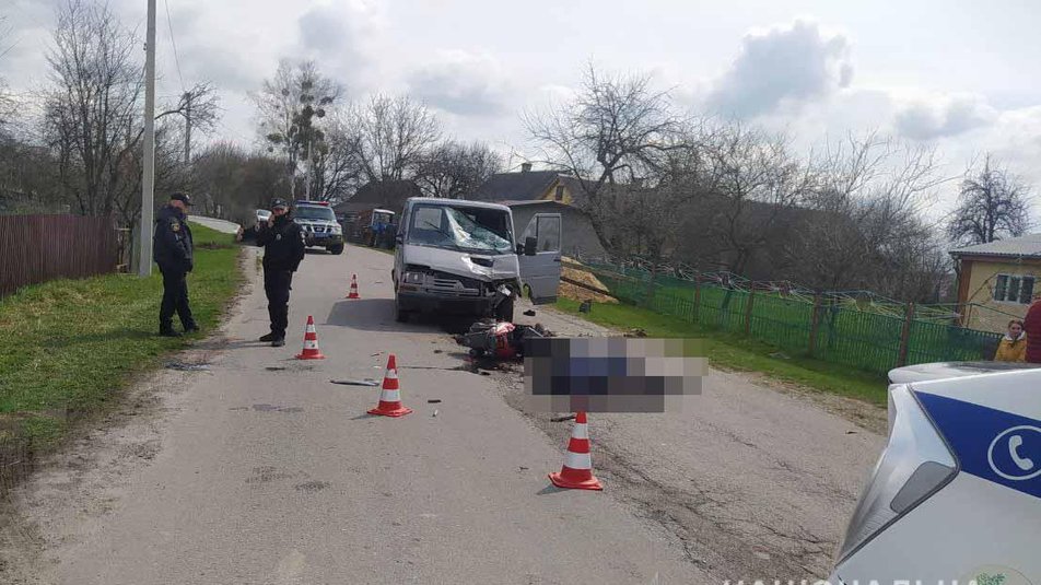 Тоді на місці події поліцейські встановили, що 46-річний місцевий житель Володимир С. на мікроавтобусі виїхав на смугу зустрічного руху, де зіткнувся зі скутером, яким керував його 51-річний кум-односелець. Від отриманих травм водій скутера загинув на місці ДТП, а його 46-річну дружину, яка сиділа позаду, із перелом стегна госпіталізували у реанімаційне відділення.