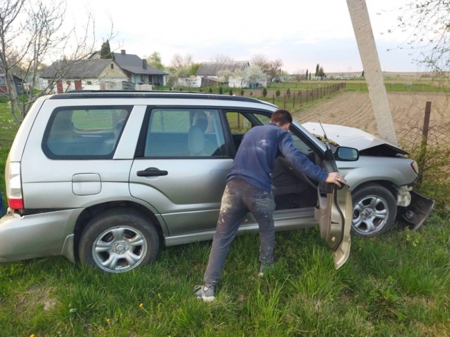 39-річний місцевий житель, водій автомобіля «Subaru», в’їхав в електроопору. Чоловік розповів поліцейським, що відволікся на телефон, тому й не впорався з керуванням.