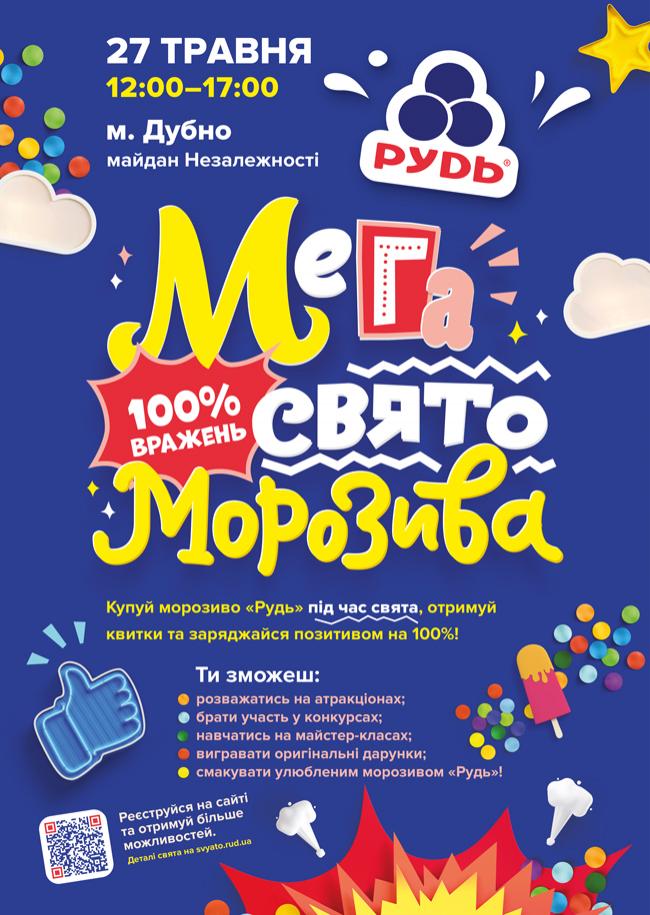 Свято Морозива у місті Дубно відбудеться 27 травня з 12.00 до 17.00 на майдані Незалежності.