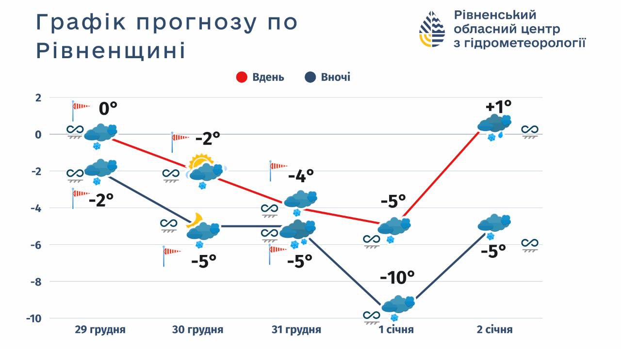 31 грудня, середа: хмарно з проясненнями. Вночі помірний, вдень невеликий сніг. На дорогах ожеледиця⚠️