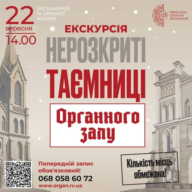 Приєднуйтесь до оновленої музично-історичної екскурсійної програми ‘Нерозкриті таємниці органного залу’, щоб доторкнутися до його живої історії.”