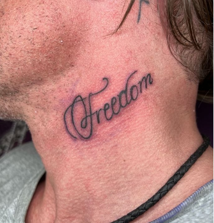 Напис на шиї, що зайняв дві з половиною години роботи. Фото: instagram.com/karrina.tattoo/
