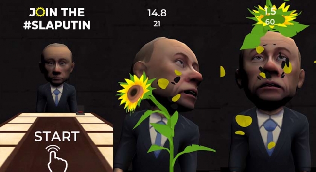 Київська студія Native Games Studio розробила міні-гру, де кожен бажаючий може відлупцювати Путіна соняшником по обличчю. Гра доступна у мобільних браузерах для Android та iOS. За словами розробників, вони хочуть привернути увагу іноземних геймерів до війни в Україні й залучити більше пожертв для військових – наприкінці гри пропонується перейти на сторінку з банківськими реквізитами для допомоги Збройним силам України. А також можна подивитися загальну кількість ляпасів, завданих гравцями лідеру рашистів. “Вирішили, що навіть якщо не доб’ємося масовості, то українці хоча б душу відведуть”, – вважає керівник студії Олександр Чезганов.