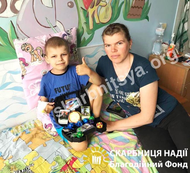 На минулому тижні хлопчикові шість днів поспіль капали хімію Іринотекан. Мама змушена була звернутись в Благодійний Фонд “Скарбниця Надії”, бо в неї залишилась тисяча гривень і потрібно було купити хімію. Після хімії лікар відпустила Женічку додому зустріти шостий День народження і після невеликої перерви хлопчик знову заступає на хімію.