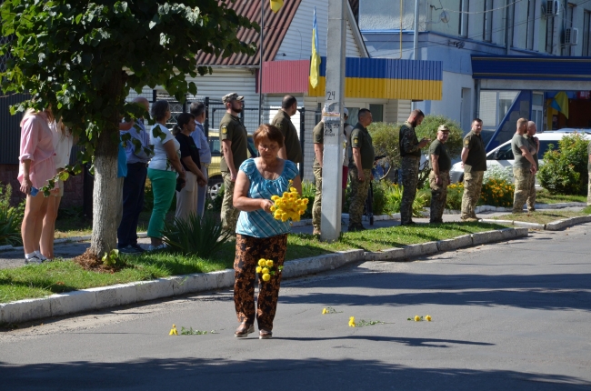 Люди зустріли жалобний кортеж навколішках, а останній шлях воїна додому встелили квітами.