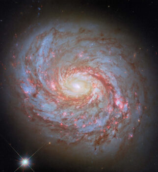 9) Цей знімок, спочатку отриманий космічним телескопом «Хаббл», з використанням нових фільтрів та методів обробки даних показує спіральну галактику Месьє 77, також відому як галактика Кальмар, розташовану на відстані близько 45 мільйонів світлових років у сузір’ї Кита. Назва «Галактика Кальмар» з’явилася відносно недавно і пов’язана з протяжною, ниткоподібною структурою, яка, подібно до щупальців, закручується навколо диска галактики.