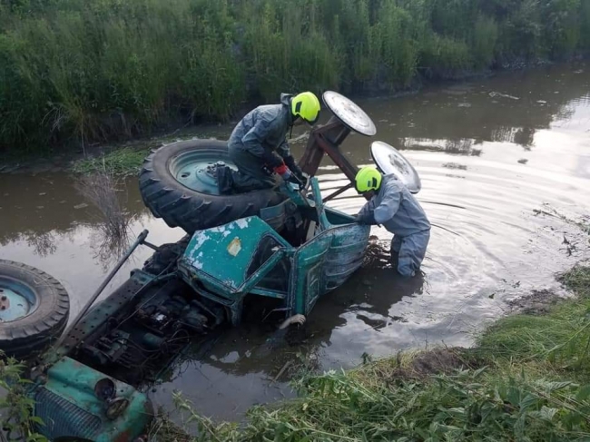 Той, здійснюючи покос трави, не впорався з керуванням і з’їхав у меліоративну канаву та перекинувся.
