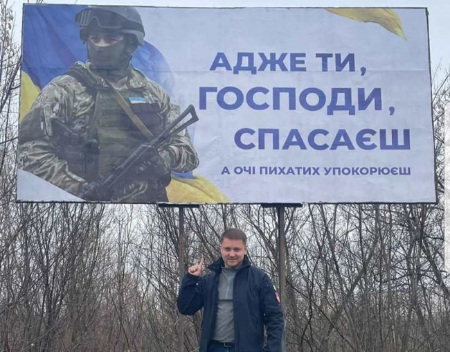 За його словами, у місті розміщені борди з подякую Богу та Збройним силам України. Однак є винятки, коли підприємці використали слова захисника острова Зміїний: «Русский корабль іди на#уй!».