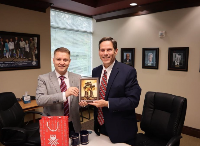 – “Ласкаво просимо» – такими словами, українською мовою, зустрів нас сьогодні Джим Ферелл, мер міста Федерал Вей, штат Вашингтон. А ще в честь ділової зустрічі з українською делегацією, біля мерії міста на флагштоці поруч американського, майорів український прапор.