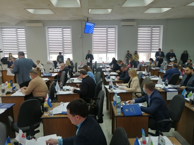 У сесійній залі депутати обговорюють питання про прийняття у комунальну власність житла у новобудові по вулиці Бориса Квашенка у Рівному.