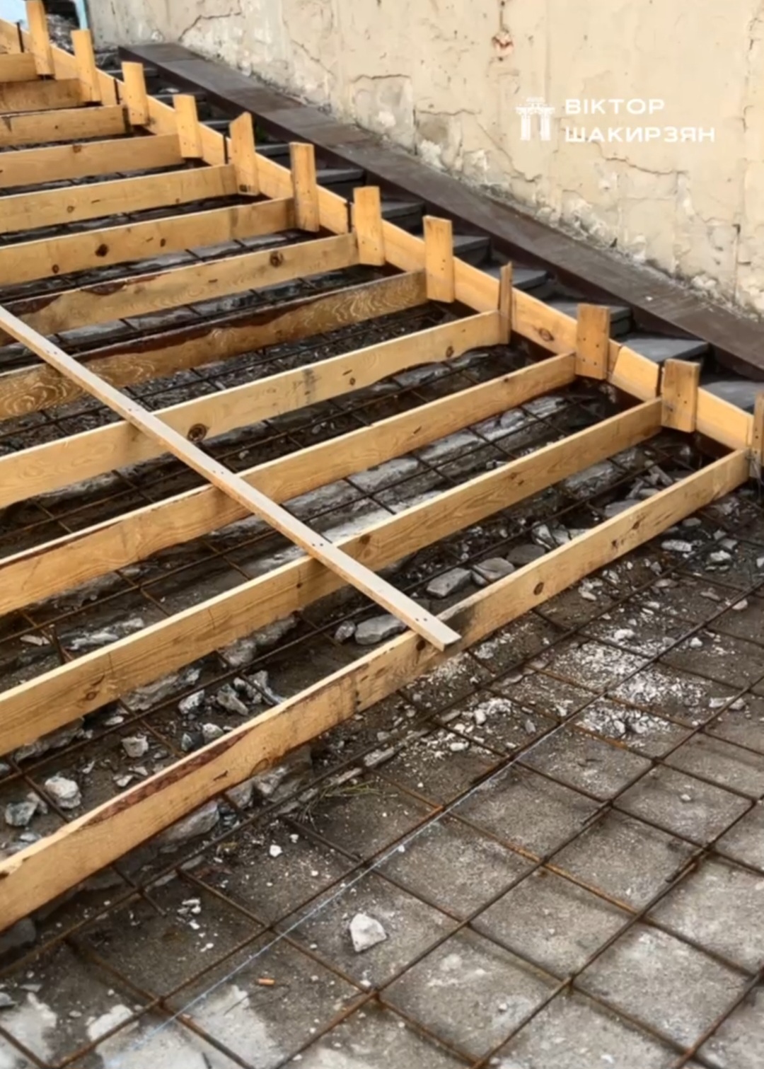 – Майстри продовжують демонтаж облицювального каменю при входах, а також ремонтують сходи. На одному з чотирьох входів уже відновлено сходовий марш і відремонтовано стіни. Триває монтаж опалубки та заливання нових сходинок на інших входах, – повідомили у міській раді Рівного.