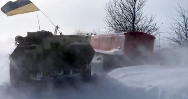 У колишньому Корецькому районі застряг у сніговому заметі шнекороторний снігоочисник підрядної організації, який допомагав бійцям ДСНС дістатись до місця пожежі. На допомогу прийшла національна поліція з броньованим, важким та всюдихідним БТРом. Поліцейські визволяють зі снігової пастки найефективнішу для боротьби з сніговими заметами техніку.