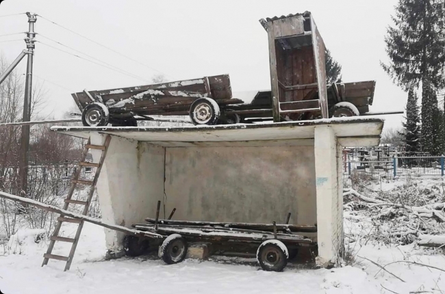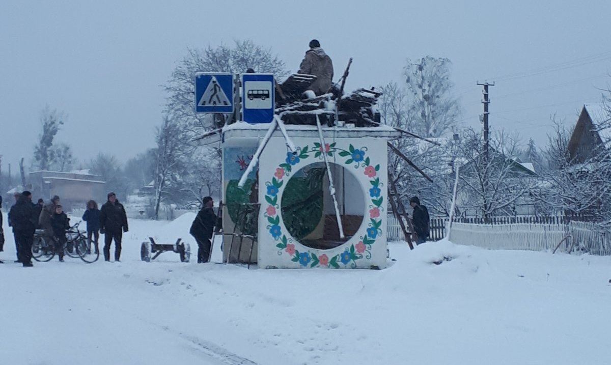 А в селі Дивень Корецького району на дах зупинки громадського транспорту висадили навіть дерев’яний туалет.