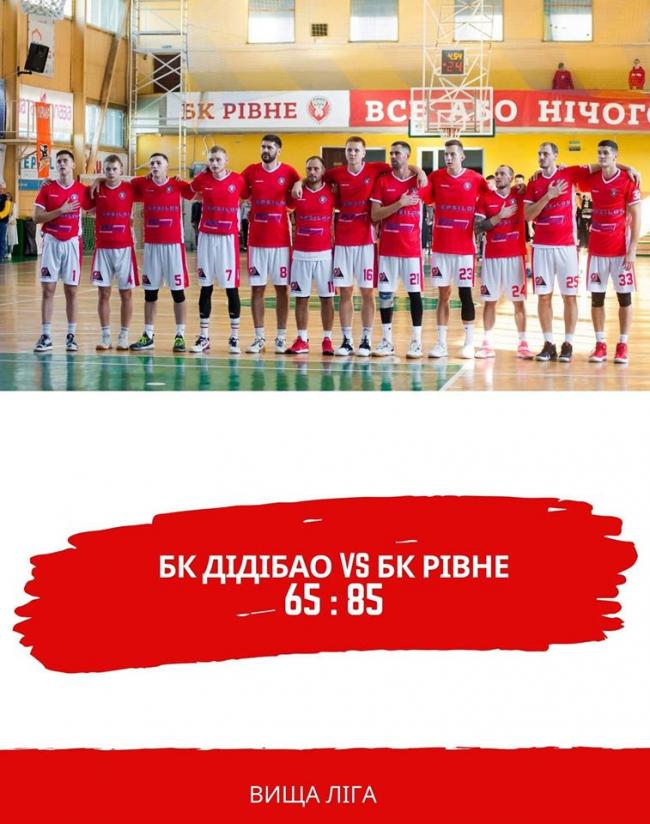 Зі стартовим ривком 10:0, господарі ще змогли впоратися і на першу перерву суперники пішли за мінімальної переваги рівнян 15:14, а далі розрив в рахунку лише збільшувався, максимально рівняни вигравали в 33 очки, але в четвертій десятихвилинці дещо збавили оберти. Тим не менше завершили матч упевною перемогою 85:65.