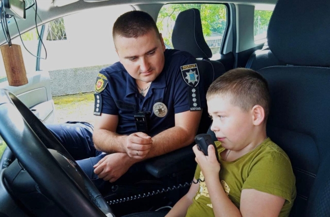 Також діти проінспектували службовий автомобіль: посиділи за кермом, ввімкнули проблискові маячки й говорили у гучномовець.