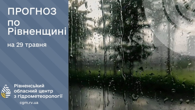 – Хмарно. Часом значний дощ. Вдень гроза, місцями град. Вночі та вранці слабкий туман. Вітер північно-західний, 7-12 м/с, вдень місцями шквали 15-20 м/с. Температура повітря по області вночі +9..+14°; вдень +14..+19°. У Рівному