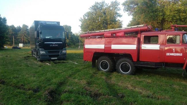 У Демидівському районі загрузла вантажівка телекомпанії зі столиці