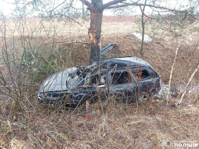 Машина злетіла у кювет, де врізалася у дерево.