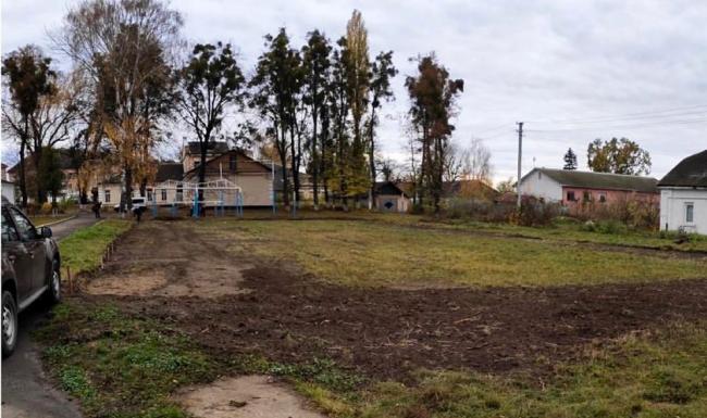На закинутому футбольному полі, що біля навчального комбінату у Дубні, вже тиждень триває будівництво хокейного майданчика. Наразі там грейдером зрівняли площадку, роблять ями під стовпи на огорожу.