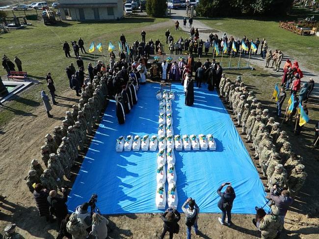 Під час похорону присутні вшанували загиблих хвилиною мовчання, поклали квіти до могили та запалили лампадки.