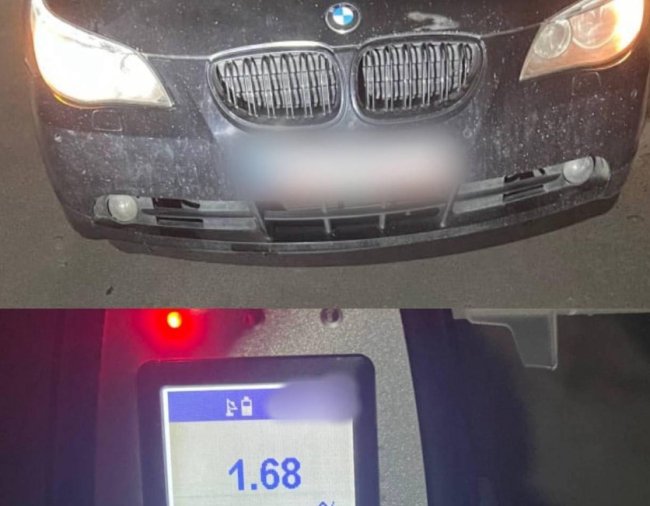 Результат виявився шокуючим — у чоловіка зафіксували 1,68 проміле алкоголю в крові, що значно перевищує допустиму норму.