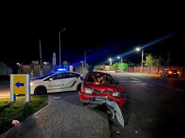 Як повідомляє поліція, 28-річний водій автомобіля «Nissan» на швидкості зніс дорожній знак.