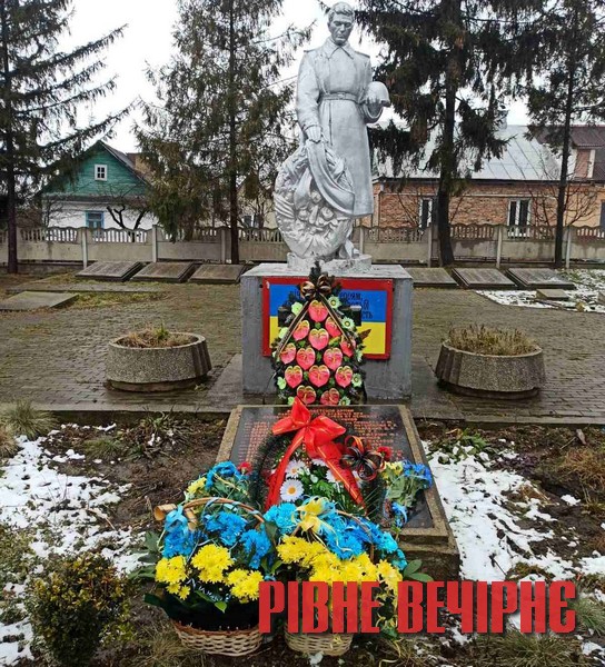 Крім двох вінків від місцевої влади, вперше за сім років війни до пам’ятника принесли квіти з надписом «Від комуністичної партії».