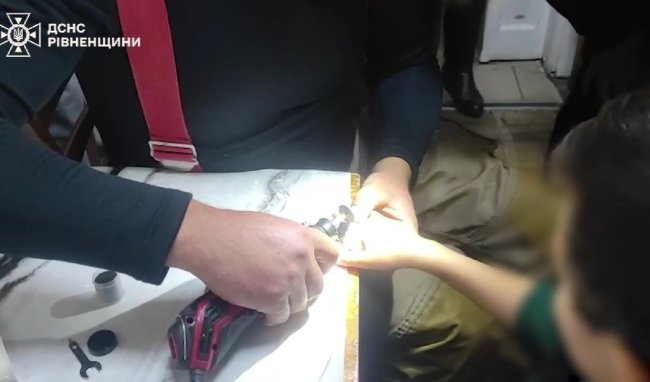 За допомогою спеціального різального інструменту вони акуратно зняли кільце з пальчика дитини. Процедура пройшла успішно, без єдиної подряпини.