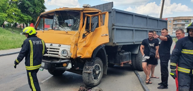 Водія КамАЗу дістали з кабіни небайдужі громадяни. Йому надали допомогу працівники швидкої медичної допомоги.