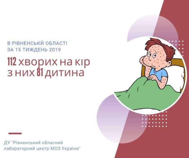 Рівненський лабораторний центр повідомляє, що упродовж тижня найбільше хворих зареєстровано у Рівненському районі (39 хворих) та м. Рівне (37). Було зареєстровано 2 спалахи кору у м. Рівне в організованих дитячих колективах (ЗОШ №10 – 3 випадки та ЗОШ № 22 – 3 випадки). Всього за тиждень в області проведено 691 щеплення проти кору, з них 169 – за епідпоказами. В області понад 7000 дітей залишаються не щепленими проти кору.
