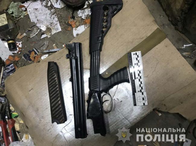 Слідчо-оперативна група, яка виїхала на місце події, вилучила із гаража, що знаходиться на території кооперативу по вулиці Стефановича райцентру, обріз гладкоствольної рушниці, пістолет, патрони, а також паперовий згорток із канабісом вагою 30 грамів, чотири поліетиленових пакетики із вмістом порошкоподібної речовини, схожої на метамфетамін.