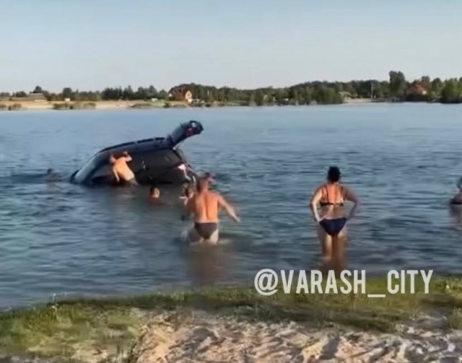 В інстаграм-спільноті «varash_city» очевидці опублікували відео, як у кар’єрі тоне автомобіль.
