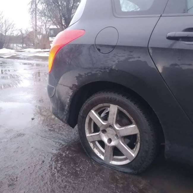 Водій автомобіля «Peugeot» на одній з вулиць населеного пункту пошкодив собі колесо, наїхавши на вибоїну.