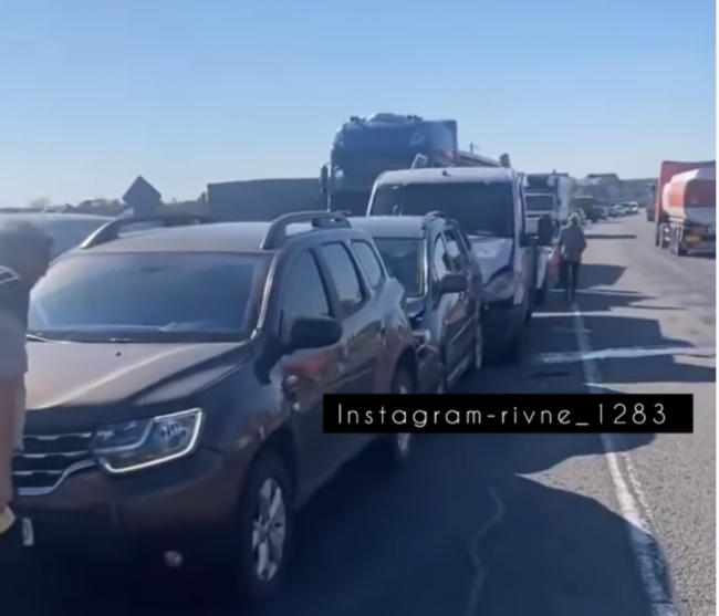 Як видно з відео, яке опублікували в Instagram-спільноті “rivne_1283”, зіштовхнулися чотири транспортні засоби.
