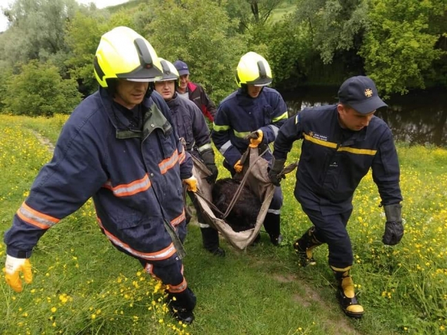Корецькі рятувальники дістали з річки чотирилапого який пробув у воді декілька днів.
